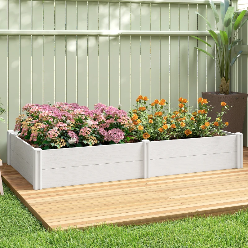 Outsunny Vinyl Raised Garden Bed Kit, 6.5 x 3 x 1ft Elevated Garden Box with Divider and Open Bottom, White