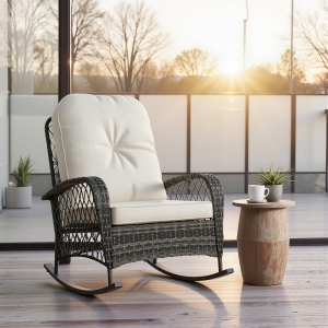 Outsunny Wicker Swivel Chair w/ Cushion, Patio Recliner Chair, Turquoise