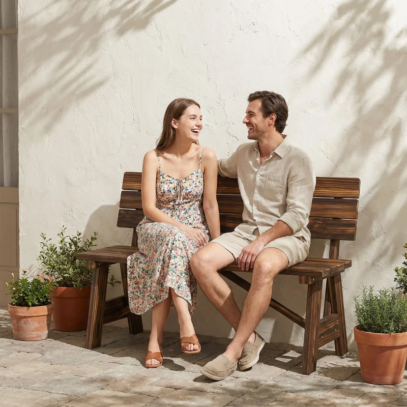 Outsunny Wooden Garden Bench for Outdoor, 2-person Patio Bench, Loveseat Furniture, Carbonized