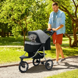 PawHut 4 Wheels Pet Stroller, 3 in 1 Dog Cat Travel Folding Carrier, for Small Dogs, Detachable, w/ Brake, Canopy, Basket, Storage Bag - Yellow