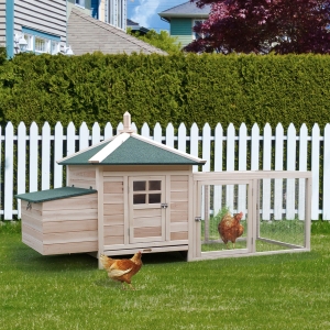 PawHut 79'' Chicken Coop Wooden Hen House Rabbit Hutch Poultry Cage Pen Outdoor Backyard with Nesting and Running Box, Ladder, Removable Tray, Multiple Doors (Red & White)