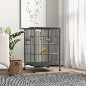 PawHut 52" Bird Cage with Rolling Stand, Toys, for Budgies Canaries Black