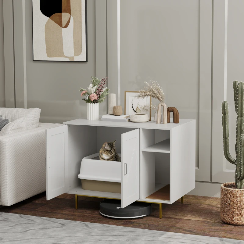 Discover the PawHut enclosed cat litter box, a stylish side table that doubles as a private cat condo. This cat litter box furniture gives your furry friend their space, helps control odors, and keeps things tidy with a particular storage compartment for cat essentials. Plus, the built-in scratching mat at the entrance catches excess litter from paws!