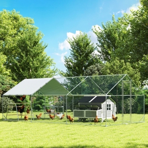 PawHut 9.8' x 13.1' x 6.6' Chicken Coop Cage, Outdoor Hen House w/Cover & Lockable Door
