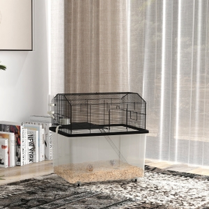 PawHut Hamster Cage, Gerbil Cage with Glass Basin for Small Hamsters, Black