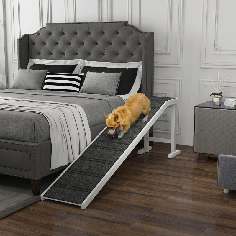 PawHut Pet Ramp, Dog Bed Steps with Non-slip Carpet, Top Platform, 74" x 16" x 25", White