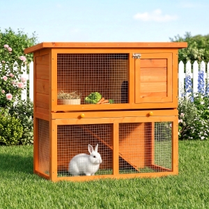 PawHut Wooden Outdoor Rabbit Hutch for Small Pet w/ Slide-out Tray, Openable Roof, 35" W x 18" D x 26" H, Dark Grey