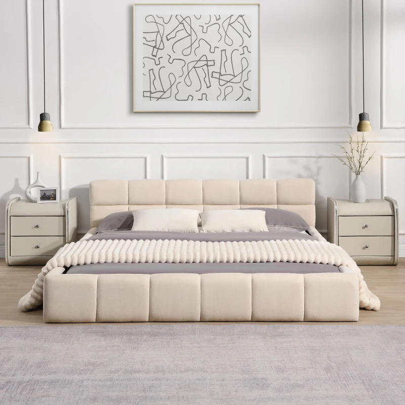 Bring a warm, modern touch to your bedroom with this elegant beige chenille upholstered bed featuring a stylish checkerboard headboard that blends plush comfort with a timeless look. Wrapped in soft, velvety chenille for cosy nights and built with a sturdy frame for lasting support, it’s available in queen and king sizes and the queen size assembles to 88'' L x 67.5'' W x 24'' H. The neutral beige colour makes it easy to style with contemporary, Scandinavian or coastal décor while the balanced padding and durable construction ensure everyday comfort and reliability.