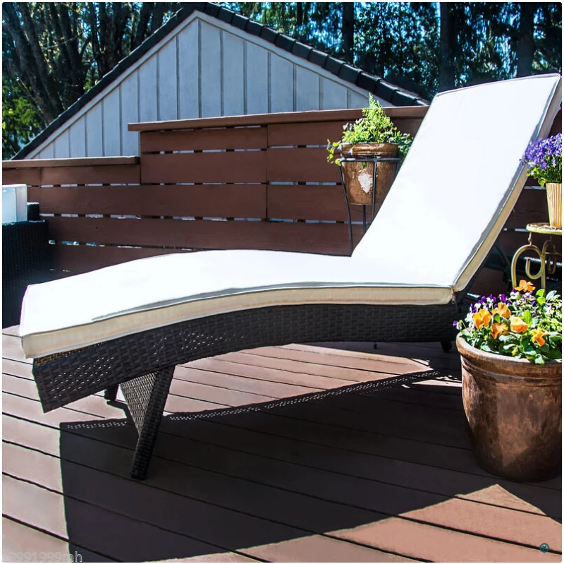 Outsunny Patio Wicker Lounger Chair, Outdoor PE Rattan Foldable Chaise Chair with 5 Position Adjustable Back, Padded Cushion, Cream