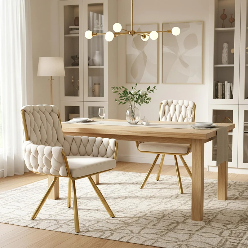 • Set of two luxe velvet dining chairs: A pair of beige, tufted swivel accent chairs upholstered in soft premium velvet with sponge padding and a solid wood frame, offering a refined, light‑luxury look that instantly elevates dining rooms and living spaces.