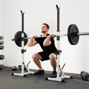 Soozier Adjustable Barbell Power Rack Squat Stand Strength Training Fitness Pull Up Weight Cage Home Gym Black