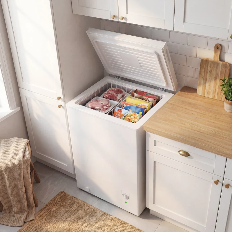 HOMCOM Mini Freezer, 3.5 Cu.Ft Chest Freezer with 5-Setting Adjustable Thermostat, Wire Basket, Quiet Operation, White