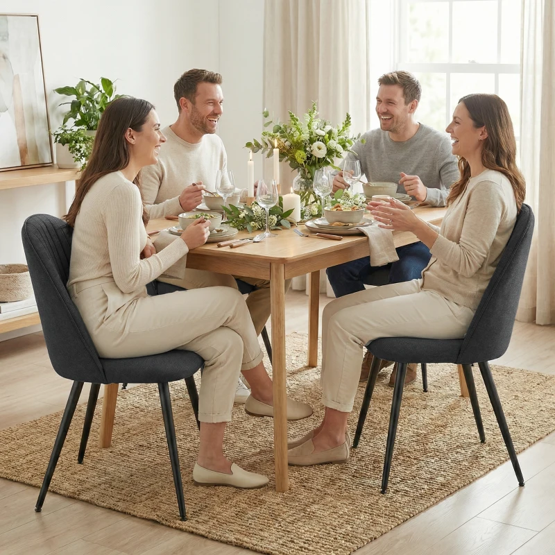 HOMCOM Set of 4 Modern Dining Chairs, Velvet Upholstered Kitchen Chairs with Steel Legs for Living Room, Black