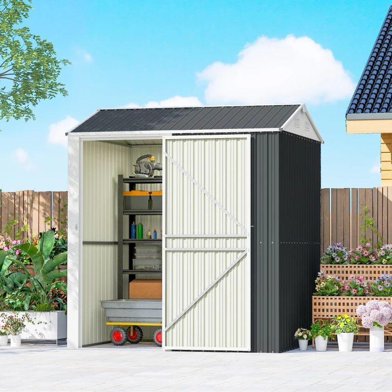 Outsunny 7' x 6' Tall Outdoor Storage Shed, Waterproof Metal Garden Shed with Gloves, Lockable Door, Dark Grey